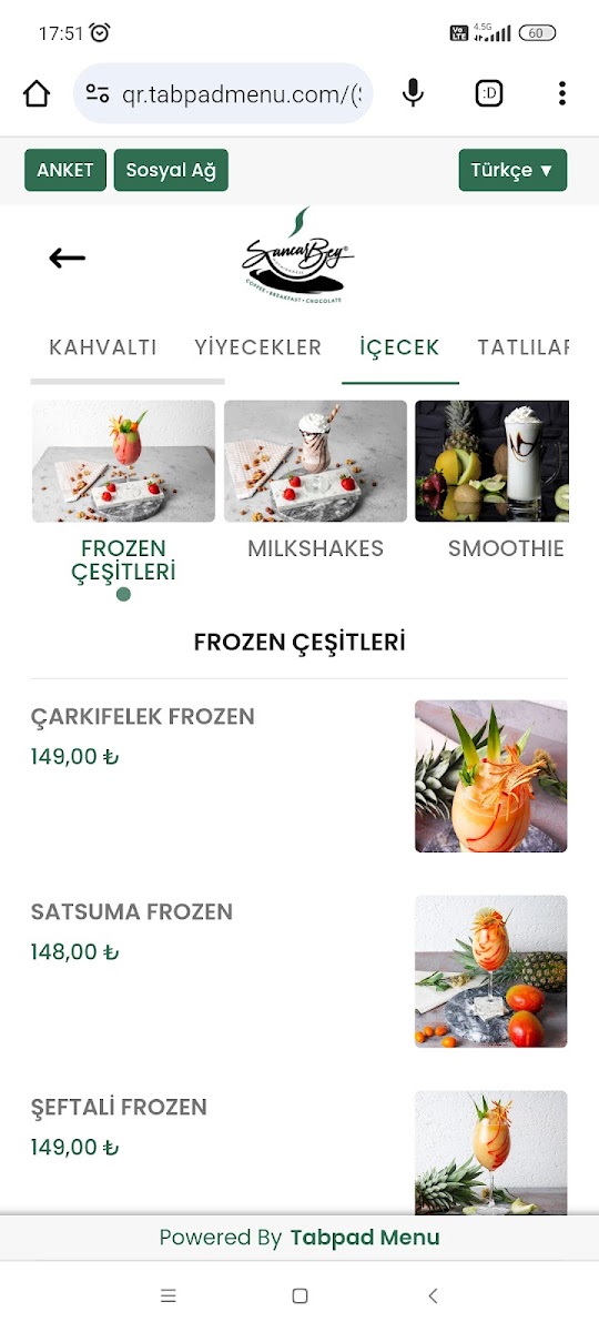 - Treat Yourself: Indulge in the luscious Lemon Cheesecake or the exotic Mango Cake, both priced at TRY 310.00 and TRY 350.00 respectively.